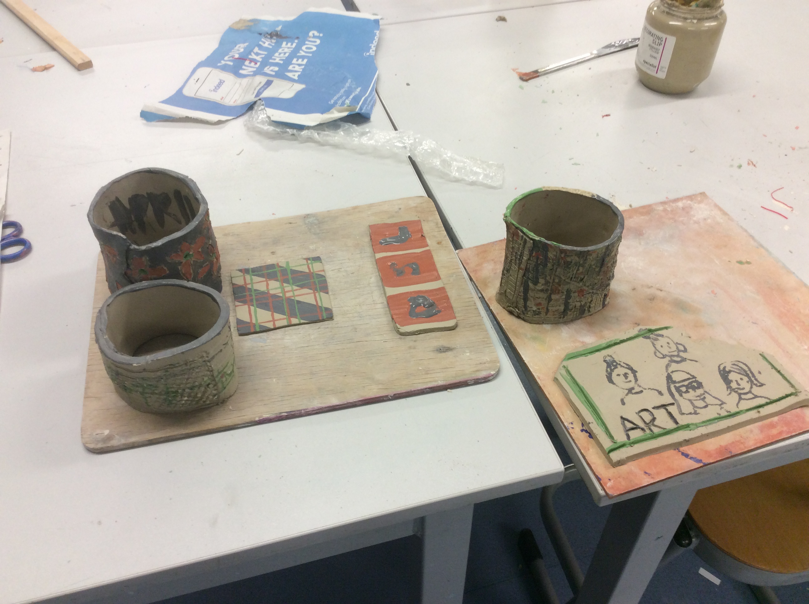 painting clay, having fun